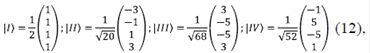 y forman un conjunto de estados de base que es conveniente para describir los estados del sistema de osciladores. A partir de los vectores de base |I >, |II >, |III >, |IV > se construye la matriz