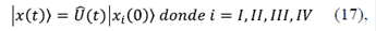 (0)> para producir un nuevo vector de estado |x (t)> cuando transcurre un tiempo (t), es decir, el estado final |x (t)> es lo que resulta cuando el operador