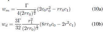 La expresión encontrada, compuesta de dos términos, permite distinguir la naturaleza de las contribuciónes a la traslación de un vórtice anular por medio de la autoinducción; primero, w m , resalta la contribución que tiene la forma del vórtice y, segundo, w d , la contribución que se tiene por el grosor del vórtice.