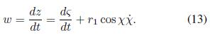 donde ς es la altura del plano sobre el cual yace el vórtice anular; segundo, se determina por diferenciación respecto del tiempo de (12b) la velocidad vertical de la superficie material. La cual queda definida como