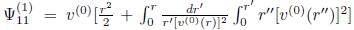 (0) corresponde a la componente angular de la velocidad a orden cero, es decir el perfil inicial de la velocidad con el que empieza la traslación el vórtice anular. Para la ecuación de Helmholtz a primer orden, la solución se obtiene a partir de los campos de velocidad dados en términos del potencial vectorial (encontrándose la componente tangencial de la vorticidad expresada en términos de una función de corriente que se obtiene a partir de la ecuación para la componente longitudinal de vorticidad) -el desarrollo de estas soluciones no se hace explícito ya que su extensión y detalle desviarían el artículo de su propósito- para más detalle ver Fukumoto (2005) y Gonzalez (2013) . Así, el coeficiente a primer orden se expresa como
