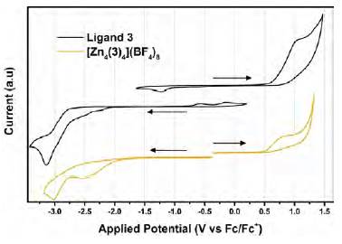Redox behavior. To fully understand the redox behavior of ligand 3 and the grid complex [(Zn4(3)4](BF4)8 we conducted Cyclic Voltammetry (CV) and Osteryoung Square Wave Voltammetry (SWV) experiments.