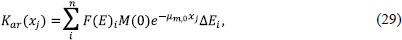 De la discretization de la Ec. (6) y de la Ec. (18), se encuentra el valor del kerma en aire en función del espesor del absorbedor, o sea,