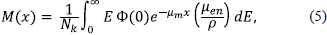 De esta manera, la lectura de la cámara de ionización como función del espesor del material, M(x), es,