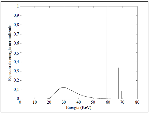 Los valores de los parámetros de ajuste de la ecuación (27) encontrados en el proceso de minimización, indispensables para generar el espectro de energía del haz de rayos X, son mostrados en la tabla 1.
