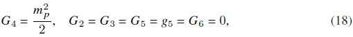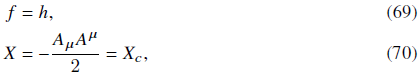 Para este caso, en primer lugar, la ecuación de campo gravitacional de componente (μ, v) = (0,1) se satisface idénticamente. Además, debido a la condición (70), A0 = 2fXc. Esto lleva a que las ecuaciones de campo gravitacional de componentes (μ, v) = (0,0) y (μ, v) = (1,1) se reduzcan, respectivamente, a