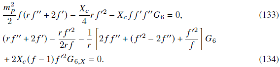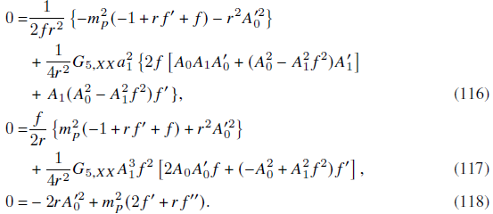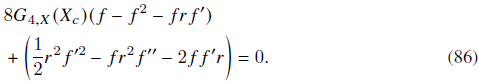 en donde X c = P2/2 y todas las b n son constantes. El modelo G 4 (X) = m 2 p /2 + X/4 es el caso especial de la última expresión (85), es decir, G 4 (X c ) = m 2 p /2 + X c /4 y todos los b n = 0 para n ≥ 3. La solución de arriba es una solución de Schwarzschild con componente vectorial longitudinal diferente de cero.