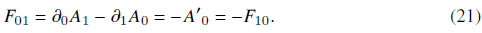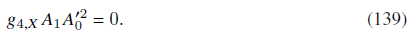 Por otra parte, la ecuación (139) también se satisface si (i) A 1 = 0 o (ii)A’ 0 = 0. Para la rama (i), la ecuación de campo vectorial de componente α = 0 y la ecuación de campo gravitacional de componente (μ, v) = (0,0) vienen dadas, respectivamente, por