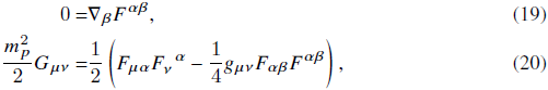 en donde m p es la masa reducida de Planck, el cual conduce a las siguientes ecuaciones de campo vectorial y gravitacional, respectivamente,