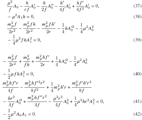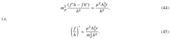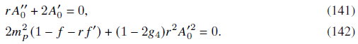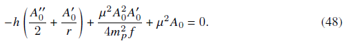 Así, insertando las expresiones de f, h, A 0 y A 1 en la ecuación de campo gravitacional de componente (μ,v) = (0,0),