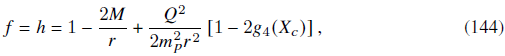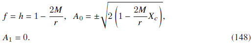 Para el caso particular g 4 (X c ) = 1/2 se obtiene la solución de Schwarzschild f = h = 1 - 2M/r con A0 indeterminado.