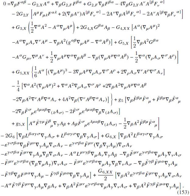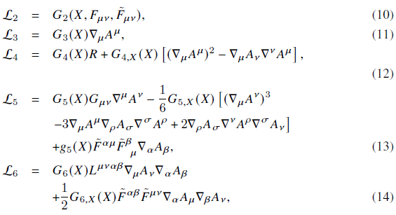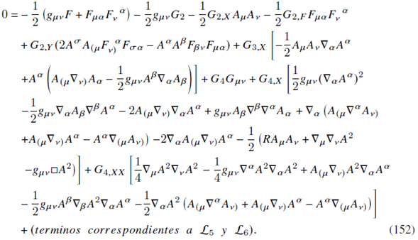 siendo X = -A μ A μ /2, R el escalar de Ricci, G μv el tensor de Einstein, G í,x ≡∂ G í /∂X,y L μvpσ - es el tensor doble dual de Riemann
