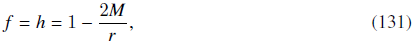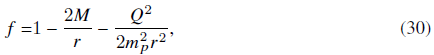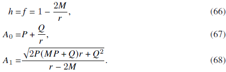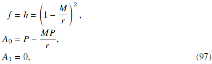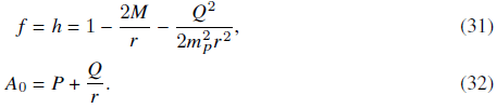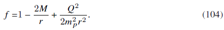 en donde C es una constante. Para satisfacer que la métrica sea asintóticamente plana, f debe tender a 1 cuando r →∞, lo que conduce a que P