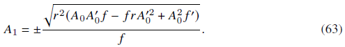 Ahora bien, si se considera la rama en la cual A 0 y A 1 son diferentes de cero, de la ecuación (60) se obtiene la relación (61). Reemplazando esta relación y su derivada en la ecuación (58) se obtiene