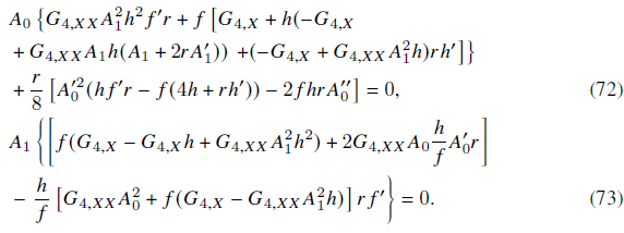 Este resultado implica, adicionalmente, que las ecuaciones de campo resultantes se satisfagan idénticamente. Así, se tiene que un acoplamiento G 4 (X) que cumpla todo lo anterior debe ser de la forma