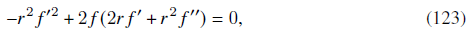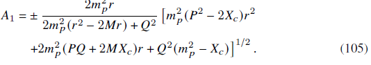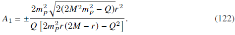 Sustituyendo esta expresión en la ecuación de campo vectorial para α = 0 se obtiene rA' 0 ' + 2A'0 = 0, lo cual lleva a la solución A 0 = P + Q/r con dos constantes P y Q. Entonces, insertando esta solución en la ecuación (107) se obtiene