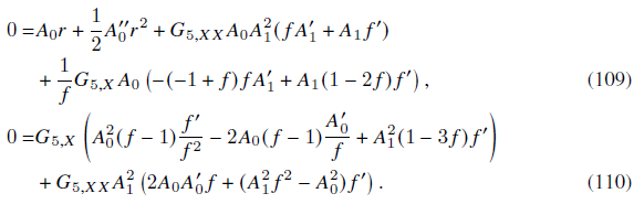 Para la rama A’0 = 0, se obtiene la solución de Schwarzschild f = h = 1 - 2M/r seguida del modo longitudinal del campo dado por la ecuación (71), con A0 = const, para acoplamientos g 5 (X) generales.