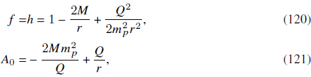 De la ecuación (134) se obtiene la solución de Reissner-Nordström cuya carga es igual a la masa del agujero negro, es decir,