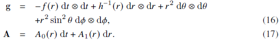 Estos perfiles para los campos son compatibles con un espaciotiempo estático y esféricamente simétrico.