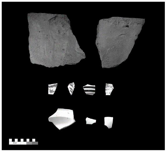 Figura 4 Tiestos correspondientes a cerámica roja (tinaja), lozas y porcelanas correspondientes a MPS y MLA