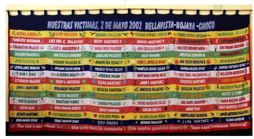 Figura 1 Telón Nuestras víctimas, 2 de mayo del 2002, Bellavista-Bojayá-Chocó. Haciendo historia, bordando memoria