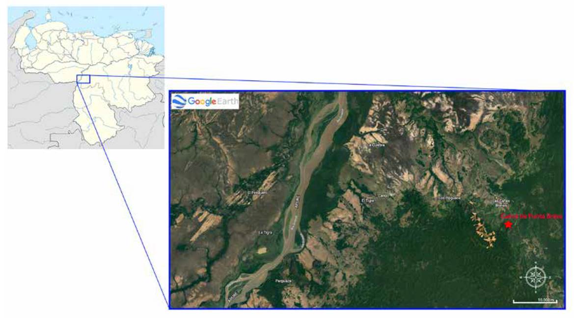 Figura 1 Ubicación del abrigo de Punta Brava en el municipio Cedeño del estado Bolívar, Venezuela