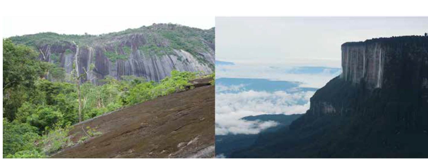 Figura 9 Montañas de agua: a la izquierda, una de las “lajas” o inselberg de Punta Brava; a la derecha, el tepuy Roraima