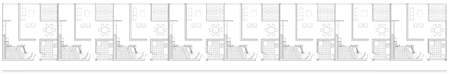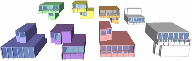 Mediante esta misma operación se generan tres conjuntos más de vivienda que, luego de un efecto de inversión o de espejo, logran obtener cuatro modelos más para un total de ocho conjuntos de vivienda. En resumen, estos conjuntos que arman el proyecto son variaciones de una misma pieza (Figura 22).
