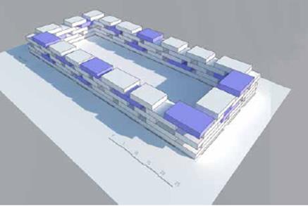Este proyecto, similar al Robin Hood Garden o incluso a las Torres del Parque (Figura 28), es un sistema que también se somete al proceso de deformación en su implantación (Figura 29) y que, además, genera una pieza o recinto en su interior que se presta como plaza (Figura 30).