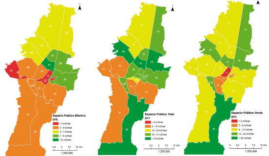 Al analizar las cifras mencionadas, junto con los mapas que describen las dotaciones del espacio público de la ciudad, y comparando todo ello con las cifras de pobreza, se encontraron datos interesantes en términos de desigualdad.