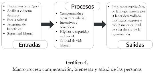 Este macroproceso tiene como fin desarrollar un sistema que permita incentivar, motivar y satisfacer las necesidades de los empleados, buscando la sostenibilidad y mantenimiento de los mismos dentro de la organización y aportando al desarrollo de las necesidades que surgen en ella. Su objetivo principal es la búsqueda de equilibrio entre las personas y la capacidad de la organización, para lo cual desarrolla los siguientes procesos: Compensación y Estructura Salarial, Incentivos y Beneficios, Higiene y Seguridad Industrial, y finalmente, Calidad de Vida Laboral.