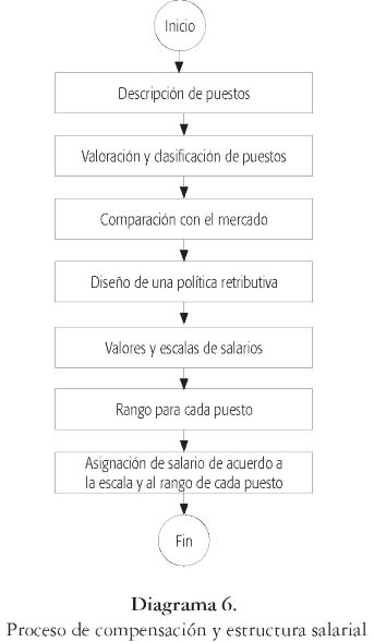 • Compensación y estructura salarial. Este es el proceso mediante el cual la organización define la manera de retribuir o reconocer los servicios y el desempeño de las personas, y para ello es necesario definir la política salarial de acuerdo con los conceptos de hombre y motivación que se tienen (Rodríguez, 2002). La compensación está compuesta por la compensación financiera que puede ser directa o indirecta, y la compensación no financiera. La compensación financiera se identifica como el proceso de remuneración o pago que reciben los trabajadores por su desempeño de las funciones derivadas de su empleo (Leal, 2004). La compensación no financiera la constituyen todos los reconocimientos no financieros que las personas tienen en cuenta y que ayudan a mantenerse en la organización, como son: las oportunidades de trabajo, el reconocimiento y autoestima, la seguridad en el empleo, la calidad de vida en el trabajo, las promociones, la libertad y autonomía en el trabajo, entre otros. El principal objetivo de la compensación es premiar el desempeño de los trabajadores, buscando conservar la competitividad en el mercado laboral y manteniendo la equidad salarial interna acatando las leyes laborales que le rigen.