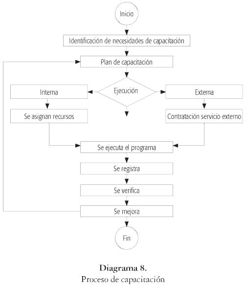 Rodríguez (2002) define la capacitación como un acto intencionado que proporciona los medios para hacer posible el aprendizaje. La capacitación tiene como propósito mejorar el conocimiento y aplicaciones en el desempeño del cargo y los procesos organizacionales, a través de la adaptación de personal a las funciones o tareas específicas del cargo, y aunque se propone mejorar el desempeño actual de un trabajador, sus beneficios pueden prolongarse y verse reflejados a toda su vida laboral, y en el desarrollo de futuras responsabilidades. El proceso de capacitación cubre cuatro (4) fases planteadas por Rue y Byars (2000): 1) Diagnóstico o evaluación de necesidades, 2) Diseño, 3) Implementación y 4) Evaluación. Los métodos y técnicas de capacitación corresponden a las estrategias de enseñanza-aprendizaje que se pueden efectuar dentro y fuera de la empresa. Entre los métodos más utilizados, según Sherman, Bohlander y Snell (1999), están: la formación en el aula (clases, charlas, exposiciones, seminarios); la formación en grupos (talleres, paneles, foros, discusiones); simulación (demostraciones, vivencias, laboratorios, tareas); aprendizaje dirigido (tutores, guías, videos) y el aprendizaje programado o autónomo (cartillas, lecturas, manuales, clases virtuales). Otros autores, como Chiavenato (2002), Dolan, Valle Cabrera, Jackson y Schuler (2003), plantean como métodos en el puesto del trabajo la capacitación para aprendices, la capacitación para la instrucción en el trabajo (CTI), las prácticas y la rotación de puestos, busca que las personas adquieran versatilidad en diferentes puestos con sus respectivas funciones.
