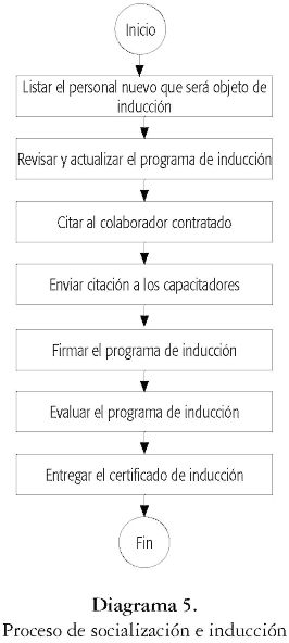 • Socialización e inducción. Es el proceso mediante el cual la organización busca que el nuevo integrante se adapte de manera rápida a la cultura de la organización, sus comportamientos y procesos. Gómez-Mejía, Balkin y Cardy (2003) consideran que la inducción busca proporcionar al empleado la información necesaria para el buen desarrollo de su trabajo, y el programa de socialización debe ir más allá, debe estar orientado a que los nuevos empleados aprendan las reglas de actitudes, conductas, estándares y valores que se esperan de él por parte de la gerencia y la organización. Según Robbins (1998), la socialización puede ser interpretada como un proceso compuesto de tres etapas: a) Pre-ingreso; b) Ingreso y c) Metamorfosis. El pre-ingreso está dirigido a los candidatos por ingresar a la empresa y consiste en suministrarles información general de la compañía, como su historia, misión, filosofía y estructura organizacional. El ingreso es la inducción, e inicia cuando el aspirante es notificado de que será nuevo integrante de la compañía; desde ese momento el trabajador entra en contacto directo con la empresa y comienza a confrontar sus expectativas con la realidad, mediante un proceso permanente de adaptación y comunicación.