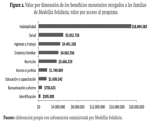 Este artigo procura identificar o preço de vários programas locais aos quais acessaram as famílias pertencentes ao programa para a erradicação da pobreza extrema Medellín Solidaria. Usando metodologias valor de substituição e custo de oportunidade, o estudo calcula o valor direto de 141 ofertas institucionais, mais o custo de acesso à informação fornecida pelo programa. Os resultados mostram que o valor médio anual dos benefícios obtidos pelas famílias equivale a 507.678 pesos, e 650.000 pesos, quando o acesso à informação é incluído. Assim, a família média evitaria gastos até 13% de sua renda anual (valor de 2011) em bens e serviços.