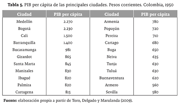 Al comparar los datos de Kalmanovitz y López (2010) y Robinson y García-Jimeno (2010), el ingreso medio antioqueño habría sido 7,1 pesos superior al colombiano para mediados de siglo, esto es una diferencia de cerca de 25%. A partir de este dato y del resto de las series de Kalmanovitz y López, Mejía (2015a) realiza una aproximación del ingreso per cápita de Antioquia para el resto del siglo.