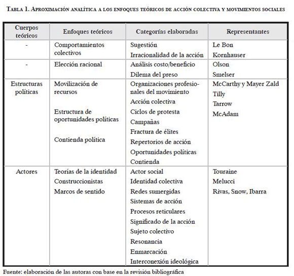 Sin embargo, es necesario precisar que este conjunto de enfoques tienen dos orígenes diferentes y están vinculados a situaciones socio-históricas específicas. De un lado, los desarrollos de la sociología norteamericana que avanzaron en el camino abierto por Olson de la elección racional, configurando una perspectiva teórica que aporta al análisis de la AC a partir de explicar la relación de ésta con los procesos sociopolíticos más amplios y los recursos para la organización y la movilización social; y de otro lado, los desarrollos europeos, probablemente motivados por la insuficiencia de los paradigmas teóricos para explicar los movimientos sociales que emergieron desde finales de los sesenta -movimiento estudiantil, ecológico, etc.- y denominados de manera genérica como Nuevos Movimientos Sociales (NMS), cuyo énfasis fueron los procesos de configuración de actores colectivos a través de la construcción de identidad. Si bien esta investigación no pretende resolver la tensión descrita, sí le apuesta a un análisis desde ambos enfoques, y en ese orden de ideas, los sintetiza a continuación.