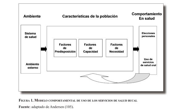 Existen diversos modelos teóricos que demuestran que hay factores asociados al acceso a servicios de salud oral, siendo el más utilizado el de Andersen, el cual explica la utilización de los servicios como un producto de la interacción con determinantes individuales, el sistema de salud y el contexto social, así como la experiencia pasada de utilización de servicios. El estudio epidemiológico más reciente del Ministerio de Salud de Brasil obtuvo información importante para determinar la autopercepción de la salud bucal. Entre diferentes informaciones se reportó que el 38% de los adultos jóvenes y el 50% de los adultos mayores consideran su salud bucal óptima; el 18% de los adultos mayores no utilizaron los servicios odontológicos y por lo menos una vez en la vida no utilizaron en un 82% los servicios de salud oral por problemas bucodentales (49-51).