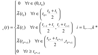 La idea general del procedimiento es obtener una secuencia de tiempos t como automágenes de la función tasa de llegadas en valores de esta que recorren todo su rango de variación de un modo uniforme. Cada segmento constante de la función a trozos se asociará a uno de estos ti, extendiéndose en un entorno suyo y tomando como valor el valor de Á(tt ). El procedimiento, expresado en términos matemáticos, es el siguiente: