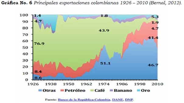 La anterior grafica nos muestra el crecimiento de la exportación de hidrocarburos y minerales a partir de 1986 y su profundización a partir de 1990; el mismo año que comienzan en Colombia las primeras reformas estructurales en respuesta a las necesidades del nuevo escenario neoliberal. Esta profundización de la explotación minero-energética demuestra el papel de Colombia en la globalización y nos deja clara la pertinencia en temas educativos, el cual sería el progresivo direccionamiento hacia la implementación de las necesidades de la economía del país. Un país totalmente servil a las malas intenciones de la globalización capitalista.