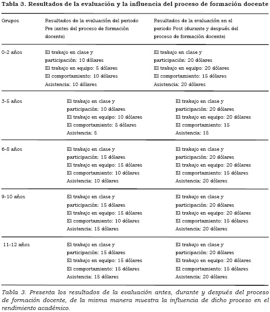 Teniendo en cuenta los grupos de edades, los criterios y rangos de evaluación; se tomaron los resultados del proceso hecho a cada uno de los grupos de estudiantes participantes del programa cultural antes de la aplicación de la estrategia de formación docente y se hizo un contraste con los resultados de la evaluación después de la aplicación de dicha estrategia, para determinar la influencia en la motivación y el rendimiento académico de los actores del proceso. Para lo cual se expresa en el siguiente cuadro.
