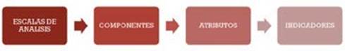 A continuación, en la Tabla 8 se presentan los componentes, atributos e indicadores asociados a cada escala de análisis