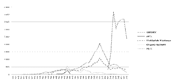 Gráfico 2 Tendencia del registro de la desaparición forzada según diferentes fuentes. Colombia 1970-2012