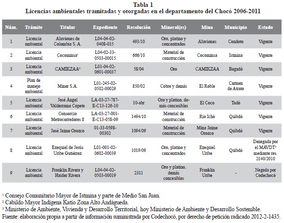 Effectiveness of prior consultation on the environmental licensing process in the department of Chocó 2006-2011