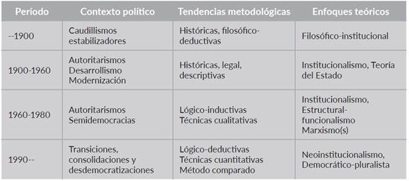 Tabla 1 Contextos políticos y tendencias teórico-metodológicas en la ciencia política latinoamericana