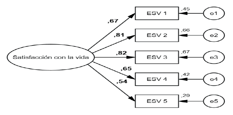 En el AFC se encontró un ajuste adecuado para una estructura unifactorial, como se ha obtenido en la mayoría de los estudios disponibles sobre el instrumento (Corrigan, Kolakowsky, Wright, Bellon y Carufel, 2013), incluido el estudio en población ecuatoriana de adultos mayores (Schnettler et al., 2017). Si bien en esta investigación los hombres mostraron mayor puntaje que las mujeres, similar al estudio de Atienza et al. (2003), a diferencia de este se encontró que la SWLS presentó invarianza factorial, al comparar ambos sexos, tal como se ha hallado en otras poblaciones (Hultell y Gustavsson, 2008; Núñez et al., 2010; Wu y Yao, 2006), lo que permite la comparación y su aplicación sin sesgos según el sexo.