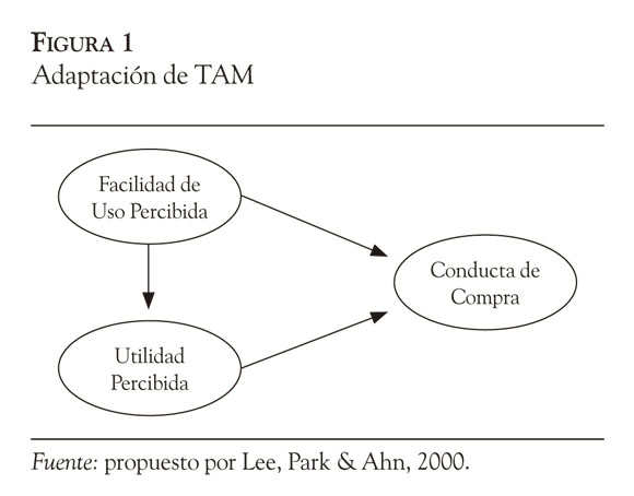 El constructo actitud fue descartado del TAM, porque la experiencia empírica demostró que no mediaba entre el efecto de la UP y la intención conductual (Venkatesh, 1999 citado en Lee, Park & Ahn, 2000). Así mismo, estos autores proponen una adaptación del modelo TAM (Figura 1).
