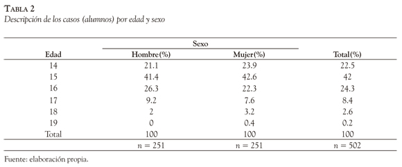 La proporción de hombres y mujeres es similar en cada edad (Tabla 2) y la estimación de la confiabilidad a través de la consistencia interna y homogeneidad de los ítems en los tres instrumentos empleados va de alta a muy alta (Tabla 3).