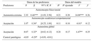 Tabla 3 Modelos de regresión lineal de las dimensiones de la relación con el padre que predicen las autopercepciones de las niñas