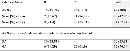 Fueron seleccionados para el estudio 42 niños, 18 chicos y 24 chicas de 8 a 10 años de edad. Los niños fueron divididos en dos grupos: con dificultades aritméticas (CDA, N = 21) y sin dificultades aritméticas (SDA, N = 21), tomando como criterios generales de exclusión los niños diagnosticados con trastornos neurológicos, psiquiátricos, desnutrición o con uso de sustancias psicoactivas.